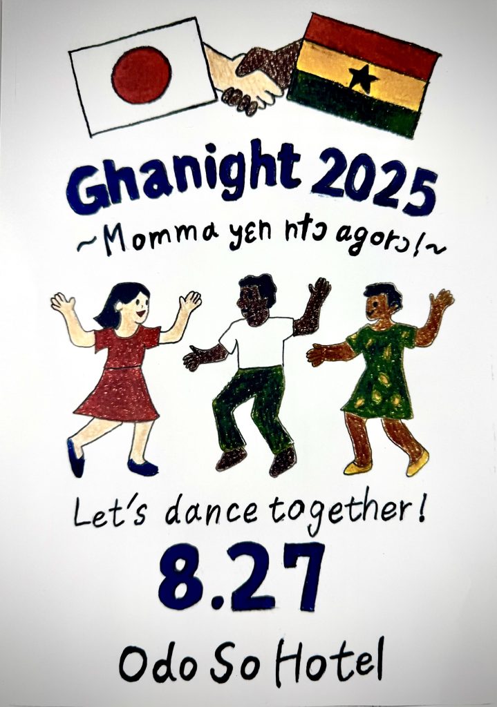そこで菊地先生率いる学科のメンバーが企画したのが、『Ghanight 2025』。学科の卒業生でもある矢野デイビットさんのお母さん(ガーナ🇬🇭在住)が経営するOdo So ホテルを訪ね、そこで地元の老若男女を巻き込んで、大ダンスパーティーを成功させるという計画。